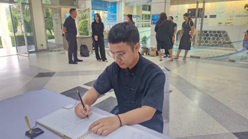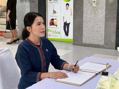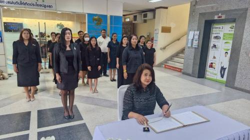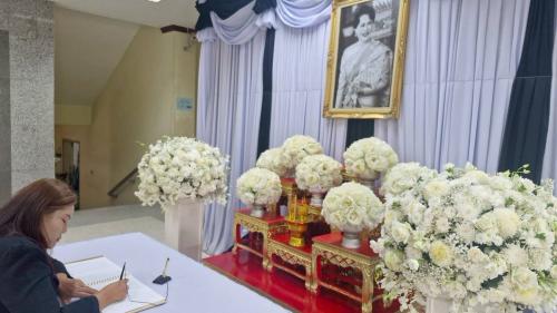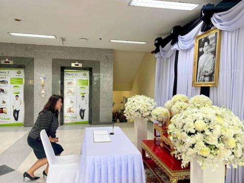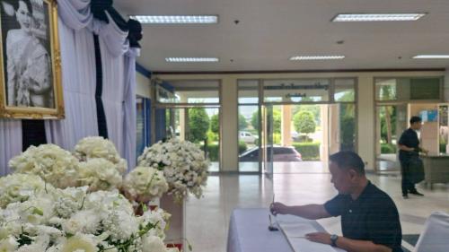 ข้าราชการสำนักงานพัฒนาชุมชนจังหวัดระยอง ลงนามแสดงความไว้อาลัยเบื้องหน้าพระฉายาลักษณ์สมเด็จพระนางเจ้าสิริกิติ์ พระบรมราชินีนาถ พระบรมราชชนนีพันปีหลวง 🖤👩🏻
