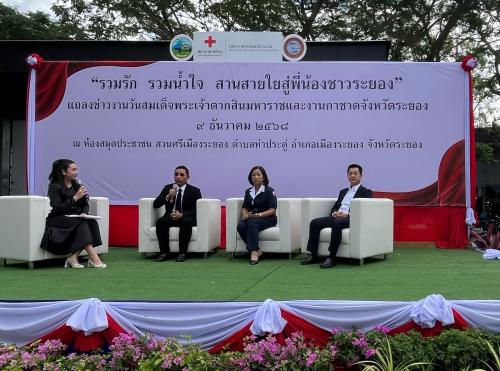พร้อมด้วยรองผู้ว่าราชการจังหวัด ปลัดจังหวัด หน่วยงานราชการ อำเภอทั้ง 8 อำเภอ และภาคีเครือข่ายทุกภาคส่วน ร่วมแถลงข่าวและเปิดกิจกรรม “รวมรัก รวมน้ำใจ สานสายใยสู่พี่น้องชาวระยอง”