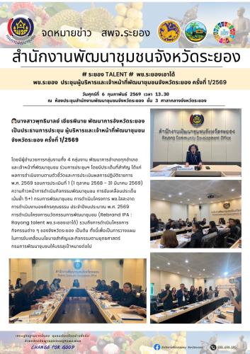 🗓️ วันศุกร์ที่ 6 กุมภาพันธ์ 2569 เวลา 13.30 ณ ห้องประชุมสำนักงานพัฒนาชุมชนจังหวัดระยอง ชั้น 3 ศาลากลางจังหวัดระยอง