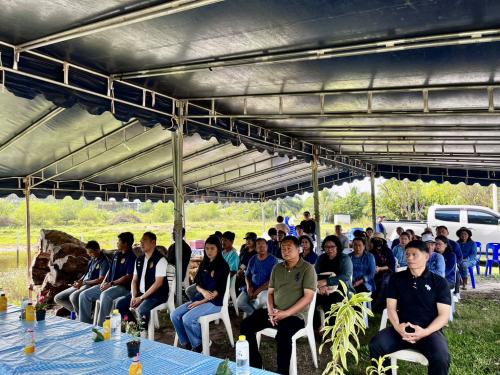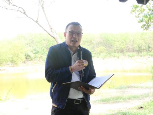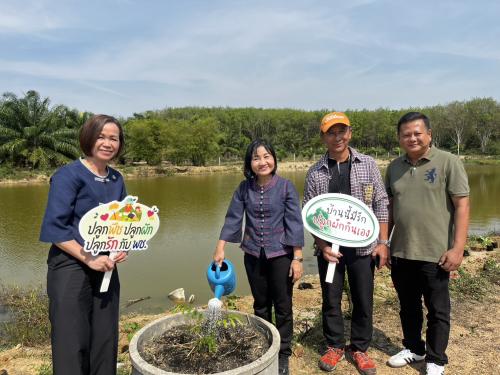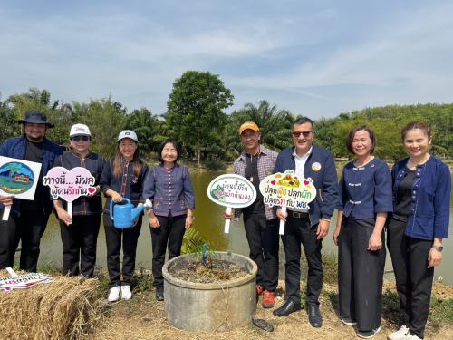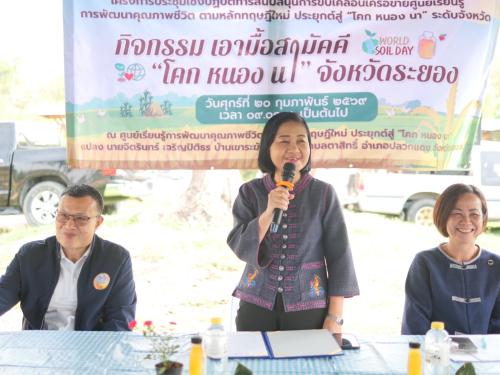 ณ ศูนย์เรียนรู้การพัฒนาคุณภาพชีวิตตามหลักทฤษฎีใหม่ประยุกต์สู่ “โคก หนอง นา” แปลงนายจิตรินทร์ เจริญปิติธร บ้านเขาระฆัง หมู่ที่ 2 ตำบลตาสิทธิ์ อำเภอปลวกแดง จังหวัดระยอง
