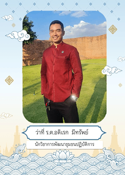 ![]() ว่าที่ ร.ต.อดิเรก มีทรัพย์ นักวิชาการพัฒนาชุมชนปฏิบัติการ |
